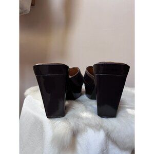 Minor surface scuffs present on leather and heel. No structural damage. Heel height = Approximately 4 inches.