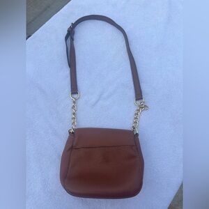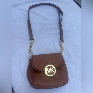 Michael Kors Brown Leather Crossbody Bag with Gold Chain Detail
