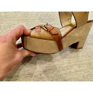 Michael Kors Brown Leather Platform Sandal Shoes - size 10