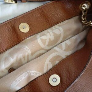 Michael Kors Brown Leather Shoulder Bag With Chain Straps & MK Logo Lining Women