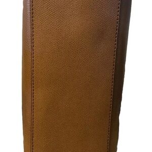 The Michael Kors Jet Set Travel Luggage Brown Saffiano Leather Medium Tote Hand Bag is a versatile accessory suitable for travel and everyday use. Crafted from leather, this stylish bag features a spacious interior with a sizeable height of 11.5" and a depth of 4". It includes multiple carrying options with a 9" strap drop, making it convenient for different occasions. The exterior color of Luggage Brown, along with the brand's signature style, adds a touch of sophistication to the bag, which can be used as a tote, shoulder bag, handbag, or purse.