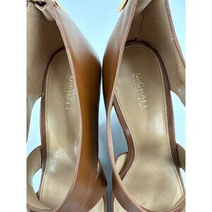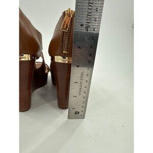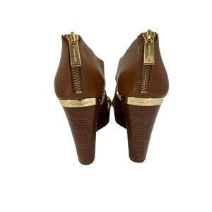 Michael Kors Brown Leather Wedges With Gold Zipper Accents Size 7