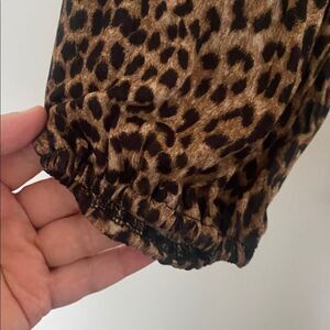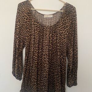 Chic leopard print blouse. Features long sleeves and a relaxed fit. Perfect for a stylish look.