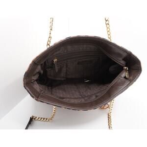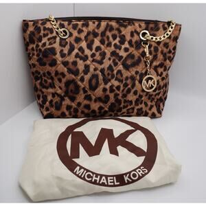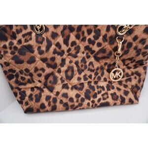 Michael Kors Brown Leopard Print Satin Leather Tote Quilted Academia Chic 36-12