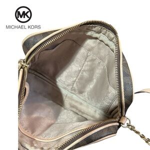 Michael Kors Brown Logo Saffiano Leather Gold Chain Jet Set Crossbody Bag