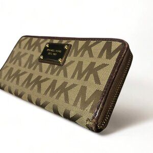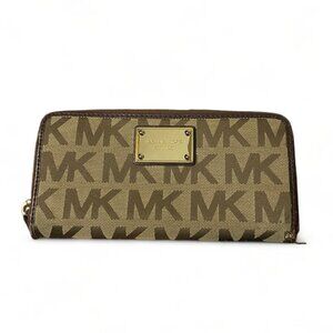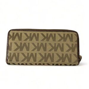Stylish Michael Kors wallet. Features iconic MK logo. Zipper closure. Perfect for everyday use.