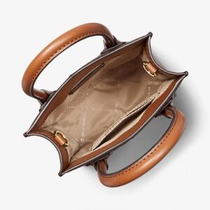 Stylish mini bag with signature MK pattern. Features gold-tone logo charm. Perfect for any occasion.