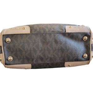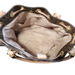Michael Kors Brown Monogram Drawstring Satchel Handbag Purse Double Top Handle