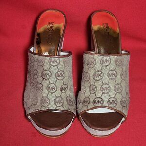 Michael Kors Brown Monogram Stud Wedge Sandals 8M