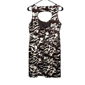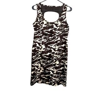 Michael Kors Brown Off White Abstract Print Dress Size 6 Keyhole Back Sheath