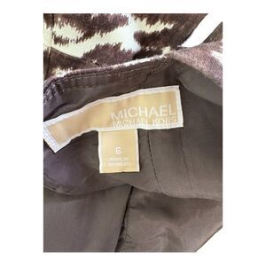 Michael Kors Brown Off White Abstract Print Dress Size 6 Keyhole Back Sheath EUC zips up back smoke free dog friendly home