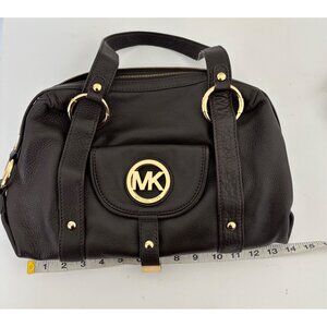Features/Accents: Micheal Kors Chocolate Brown Leather Bag, Gold Hardware MK Bag, MK Brown Leather Satchel, MK Brown Leather Shoulder Bag, Brown Top-Handle Bag