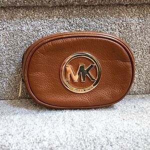 Michael Kors Brown Pebbled Leather Cosmetic Makeup Case Bag