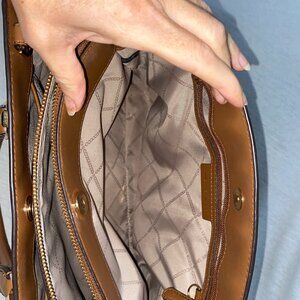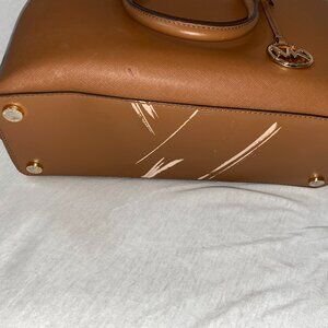 There is lipstick stains inside and the bottom got stuck in some wheels but you can't see the bottom when you're holding the bag. (Discount offered)
