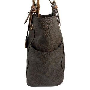 Michael Kors Brown Signature Coated Canvas Jet Set East/West Tote w/ Bag Charm