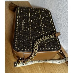 Michael Kors Brown Signature Coated Twill Crossbody with Studs NWOT