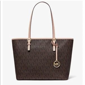 MICHAEL KORS Jet Set Charm Brown MK Signature Zip Tote TZ Bag