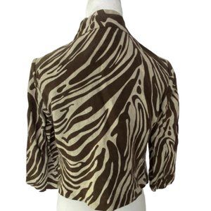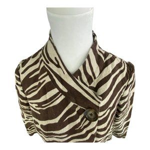 Michael Kors Brown & Tan Animal Zebra Print Swing Linen Cropped Jacket Size 4