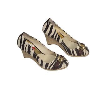 Michael Kors Brown Tan Tiger Print Espadrille Peep Toe Wedges Size 9M New In Box