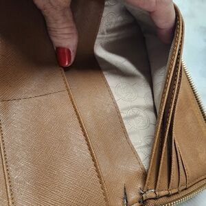 Elegant Michael Kors wallet. Textured brown design. Perfect for everyday use.
