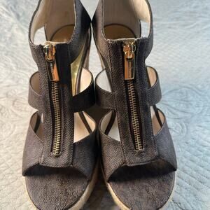 Michael Kors Brown Wedge Sandals with Espadrille Heel
