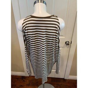 Michael Kors Brown & White Striped Cold Shoulder Shirt, Size S, NWT! $79