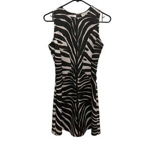 Michael Kors Brown Zebra Print Scuba Fit and Flare Sleeveless Dress size 2