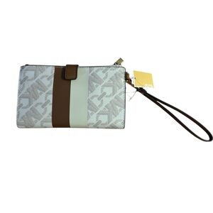 Stylish and compact, this Michael Kors wristlet is perfect for on-the-go convenience. Featuring a chic brown and cream design, it adds a touch of elegance to any outfit.