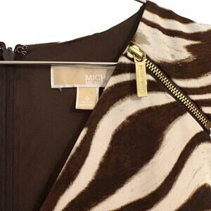 Michael Kors Brown and Cream Zebra Print Sleeveless Sheath Dress S