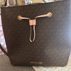 Michael Kors Brown and Pink Shoulder Bag with Monogram