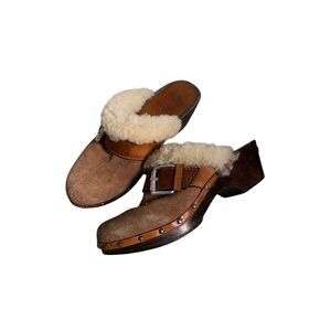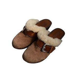 Michael Kors Brown Suede Leather Studded Wooden Heels Clog Mules Size 7 1/2 EUC