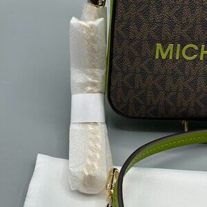 • Signature MK dark brown printed exterior with bright Meadow Green trim and Name on front