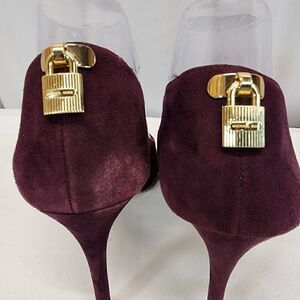 Michael Kors Burgandy Suede Heels Lock Hardware Size 8.5