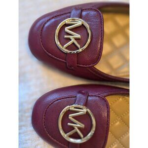 Michael Kors Burgundy Leather Flats With MK Logo Quilted Insole Rubber Sole 10M