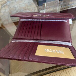 Michael Kors Burgundy Leather Wallet with Gold Hardware