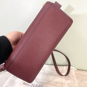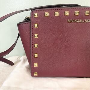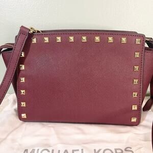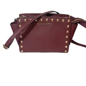 Michael Kors Burgundy Saffiano Leather Selma Studded Satchel Crossbody Bag