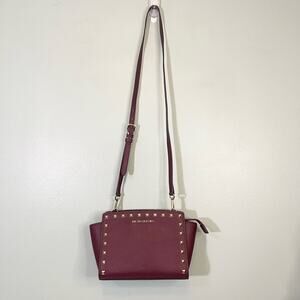 Michael Kors Burgundy Saffiano Leather Selma Studded Satchel Crossbody Bag