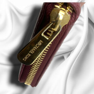 Michael Kors Burgundy Wine Pebbled Leather Zip Around Continental Wallet