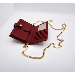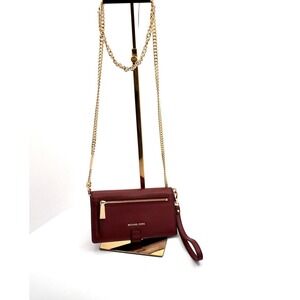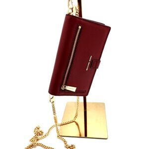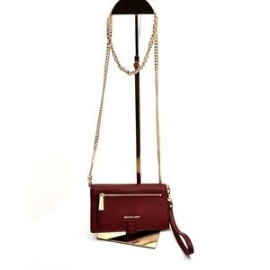 Keywords: Michael Kors, wallet on chain, crossbody bag, clutch, handbag, burgundy, gold chain, designer bag, evening bag, card holder, women's fashion, leather wallet
