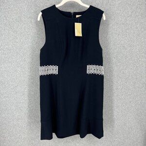 Michael Kors Business Sheath Dress Size 12 Navy Blue Embellished Cocktail NEW