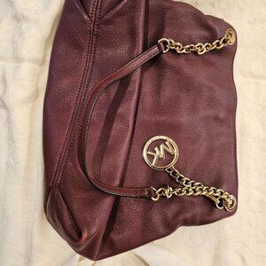 Michael Kors buttery soft leather shoulder bag in gorgeous burgundy. Excellent condition, multiple compartments, 4 interior slip pockets, 1 interior zip pocket, key clip, gold tone hardware, dust bag. 10" L x 11"/13" W x 5" D