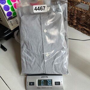 Michael Kors Button Down Shirt Mens Large White Blue Micro Plaid Cotton