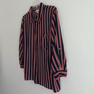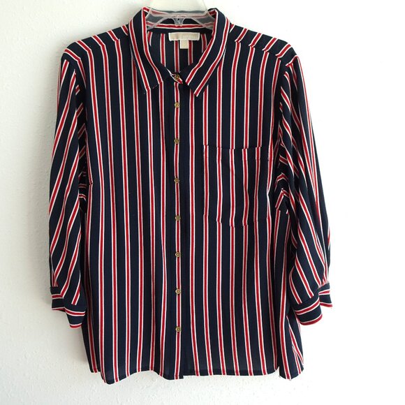 Michael Kors Button Front Top Blouse Women's Plus Size 3X Blue Red Stripe Office