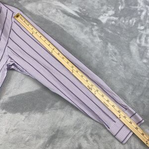 Michael Kors Button Up Dress Shirt Mens Lilac Purple Check Striped (15.5) 32/33