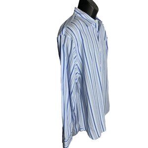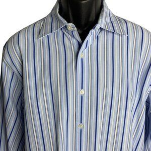 Michael Kors Button Up Long Sleeve Dress Shirt XL Blue Striped Collared Cotton