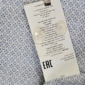 The Michael Kors Button Up Shirt in Men's size Large features a stylish blue floral pattern, slim fit design, and button-down collar. Made from a blend of elastine and cotton, this versatile shirt is suitable for various occasions including casual, formal, and workwear.