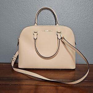 Michael Kors CINDY Large Dome Satchel Saffiano Leather Oyster & Gold 38S9XCPS3L