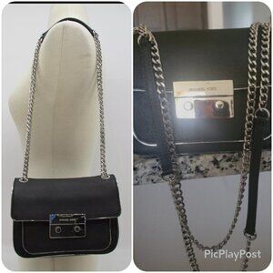 Magnificent Michael Kors that is on trend and rare. The item is adorable with its luxurious rich black color and heart stopping silver trim. It features like new silver hardware that shines beautifully. It's unique in design as it is described as a convertible mini. Unlike the typical mini the interior is designed with credit card holders and so MANY COMPARTMENTS. The handbag is definitely baddie certified and you need this in your closet.