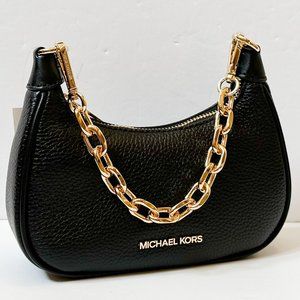 Michael Kors CORA MINI Zip Pouchette Shoulder Crossbody Leather Bag Black