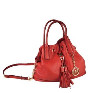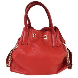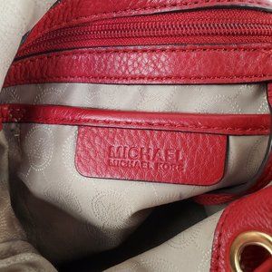 Michael Kors Camden Large Red Drawstring Satchel Leather Bag.